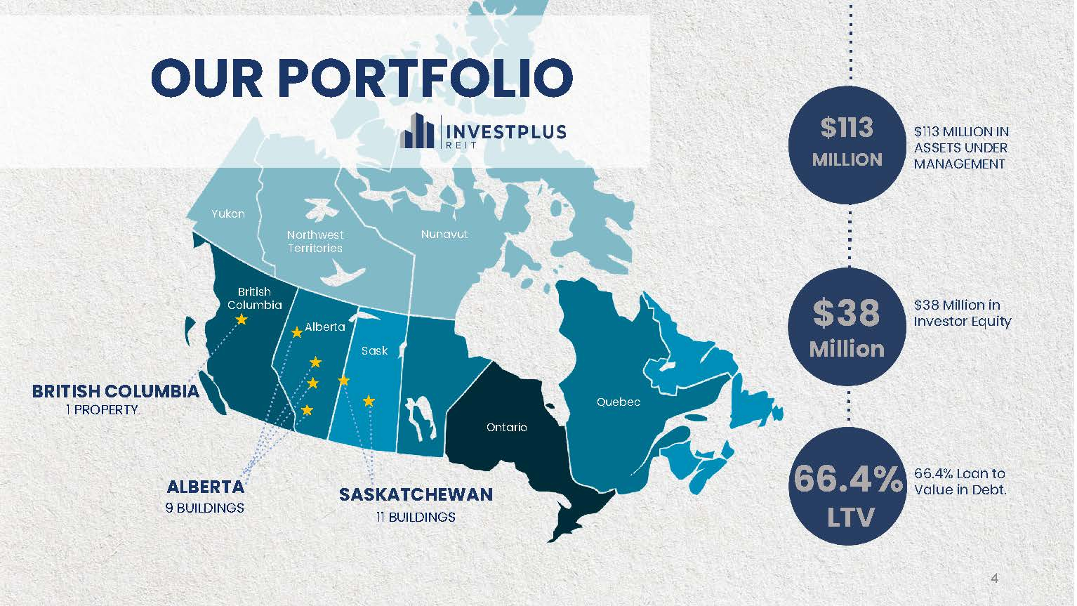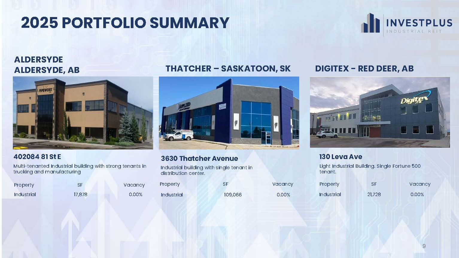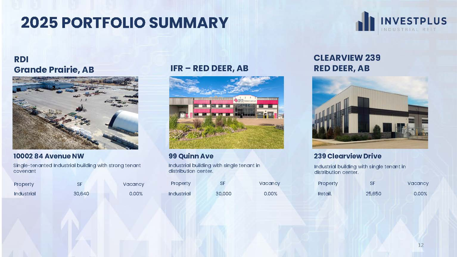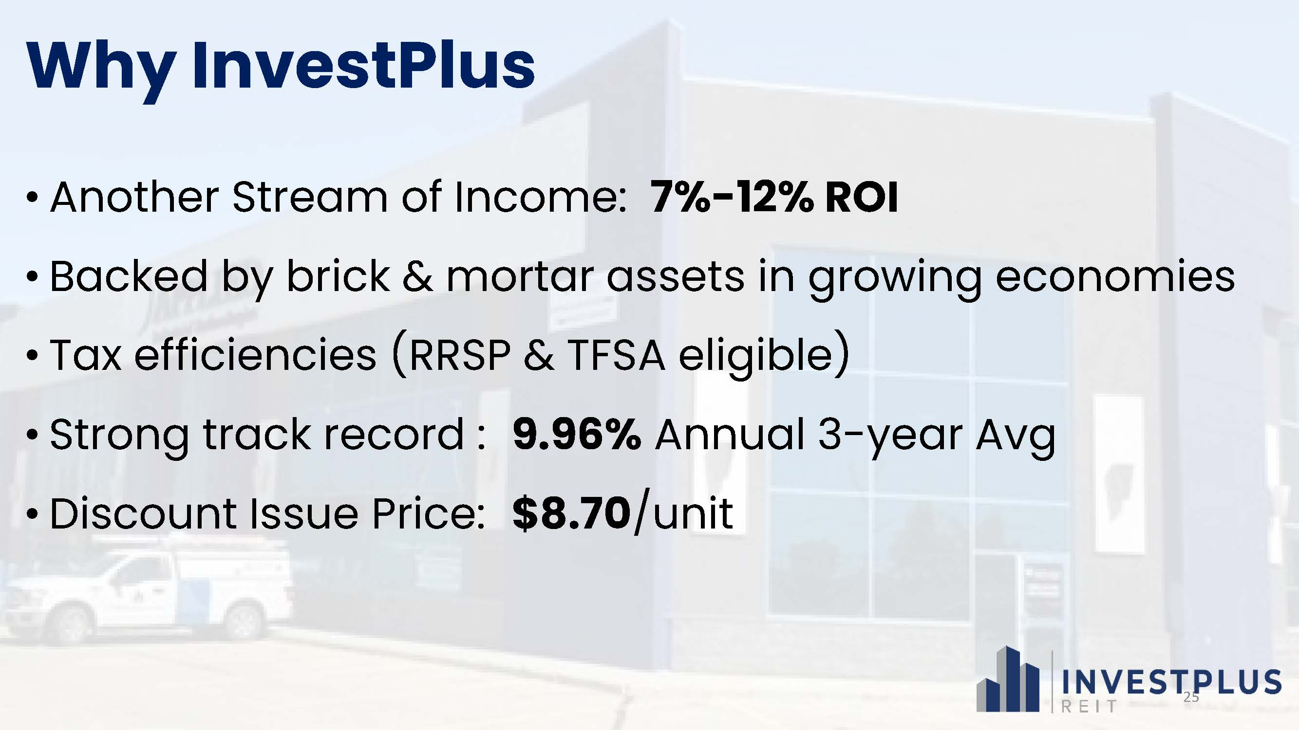 The Trust plans to invest its funds into InvestPlus Real Estate Investment LP, which will purchase residential and industrial properties via other Limited Partnerships. The Trustees of the Trust are Domenic Mandato, Donald Leitch, Ronald Gratton, and Richard Carl.