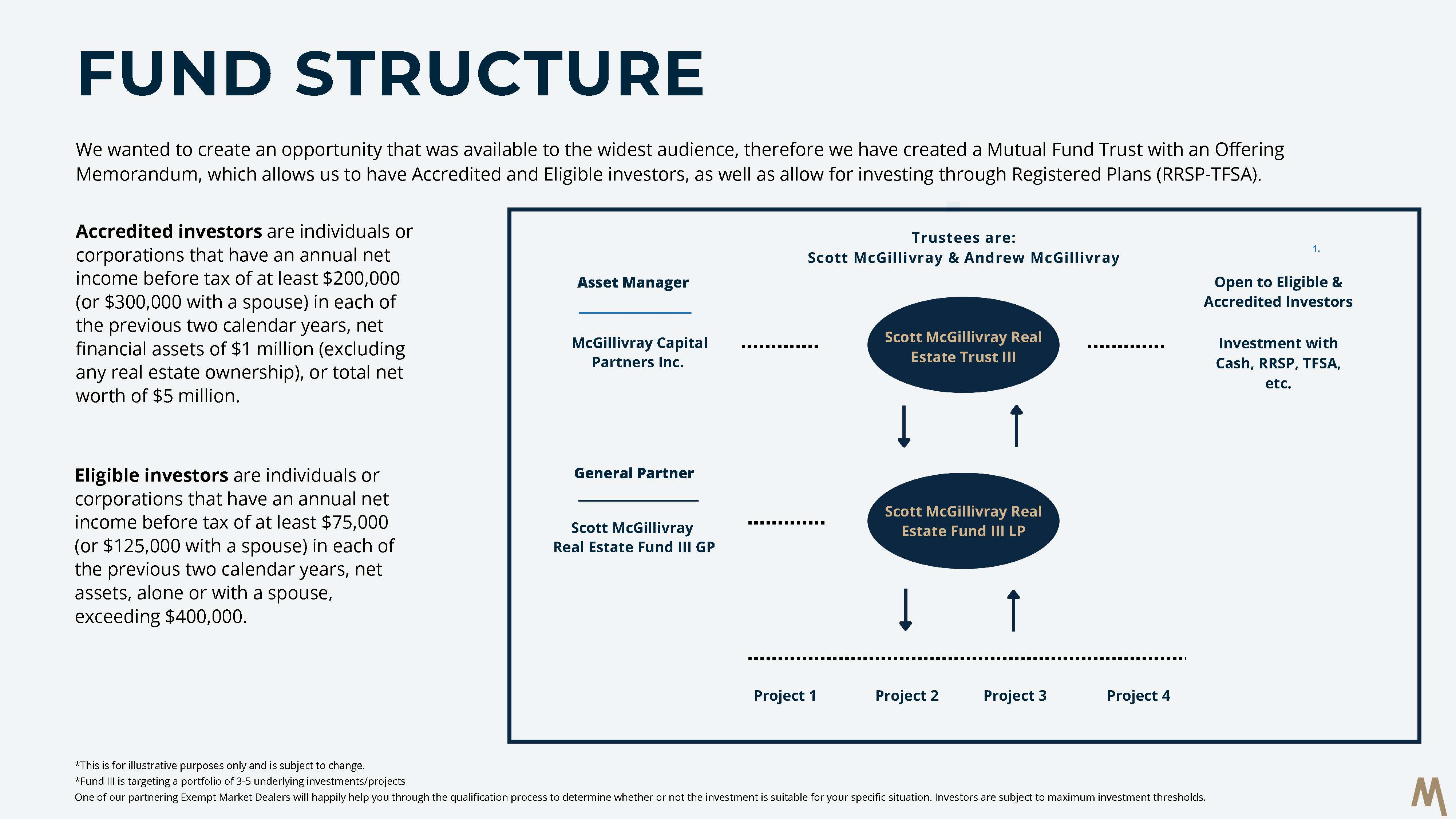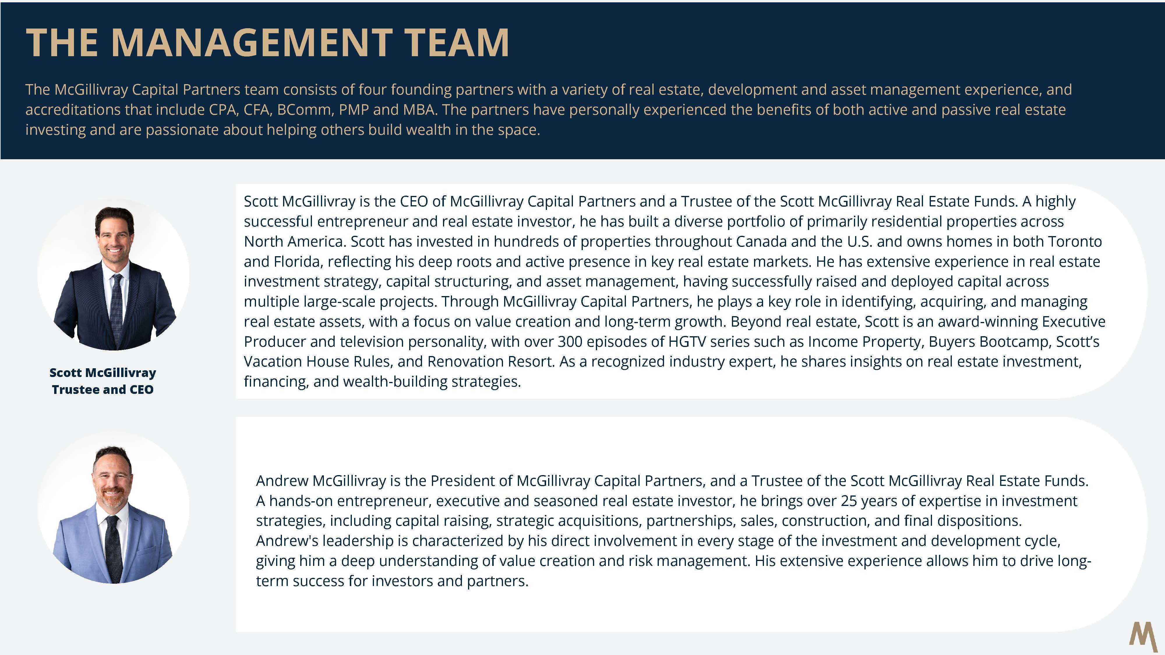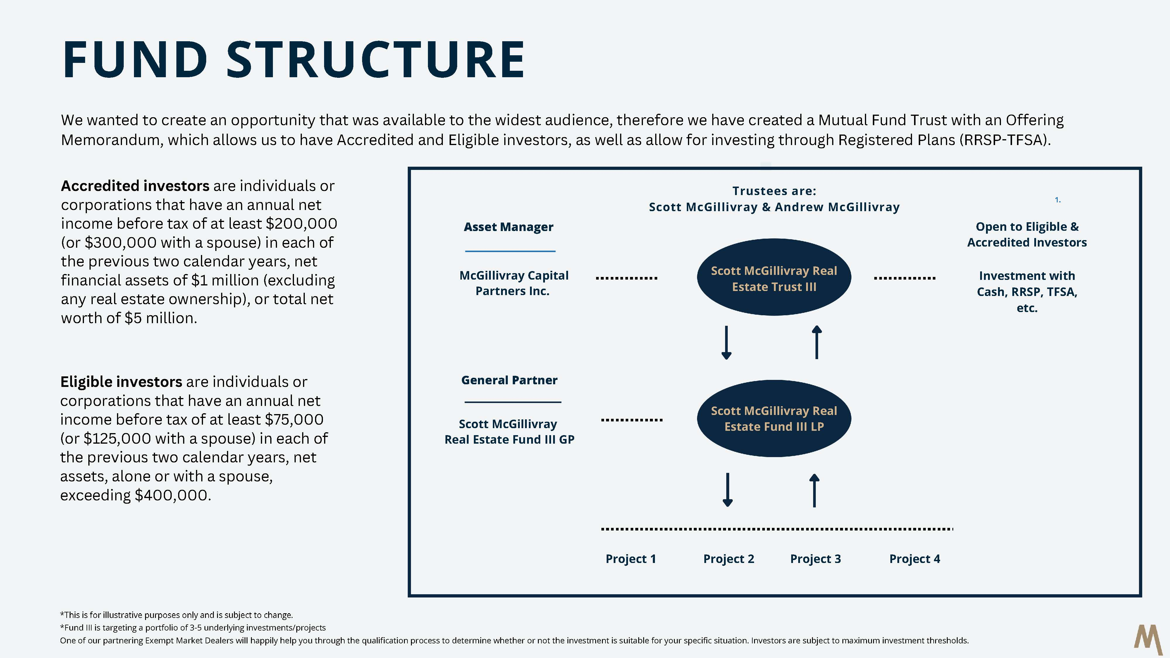 The Trust plans to invest its funds into Scott McGillivray Real Estate Fund III LP. The Trustees of the Trust are Andrew and Scott McGillivray.