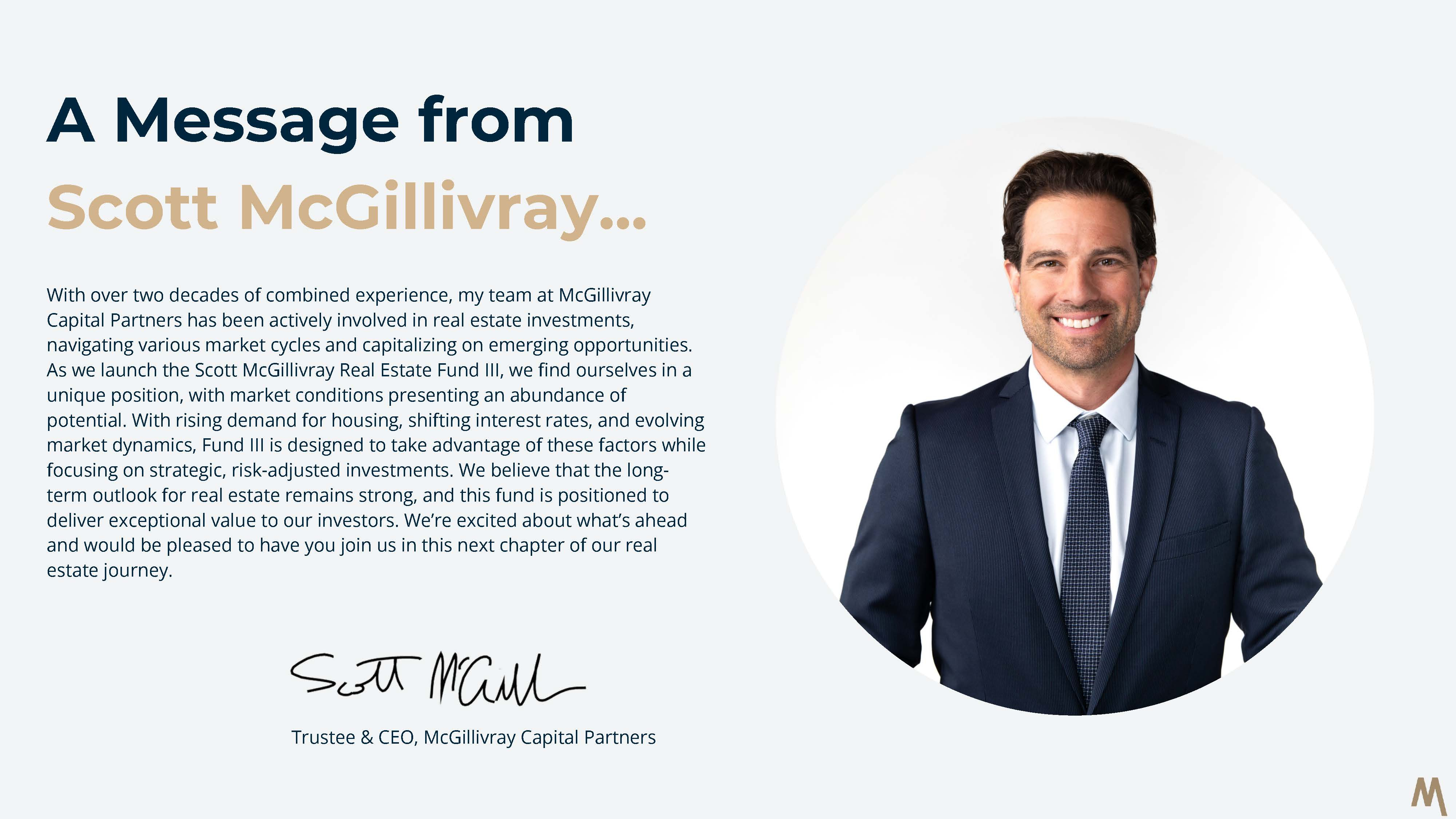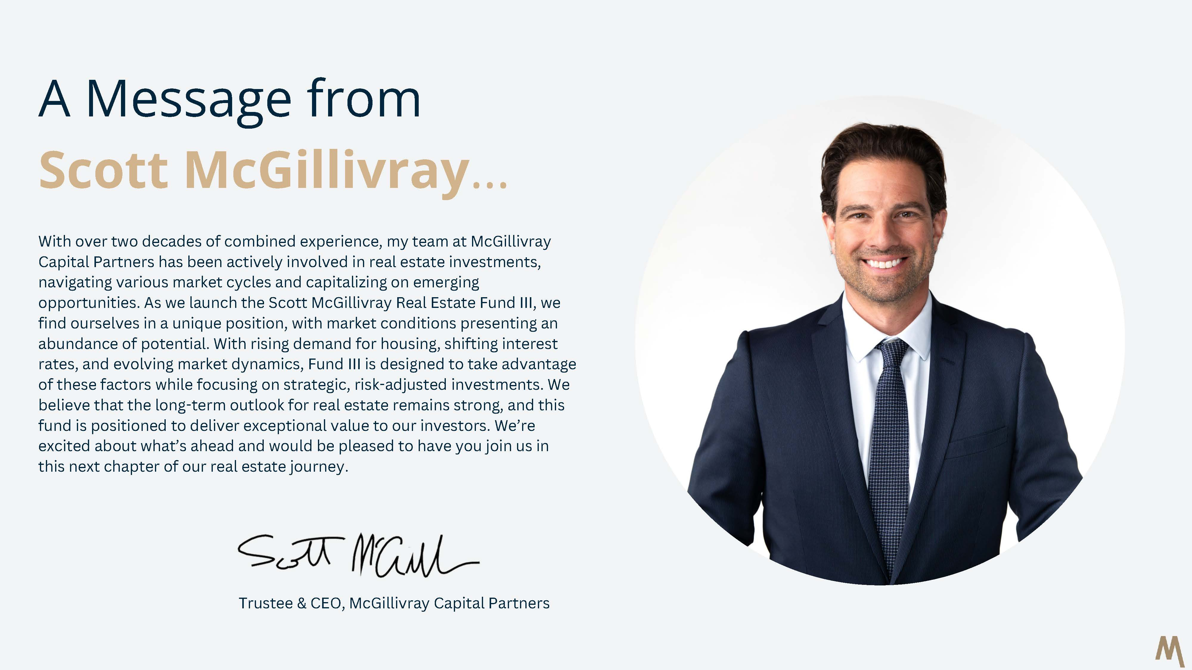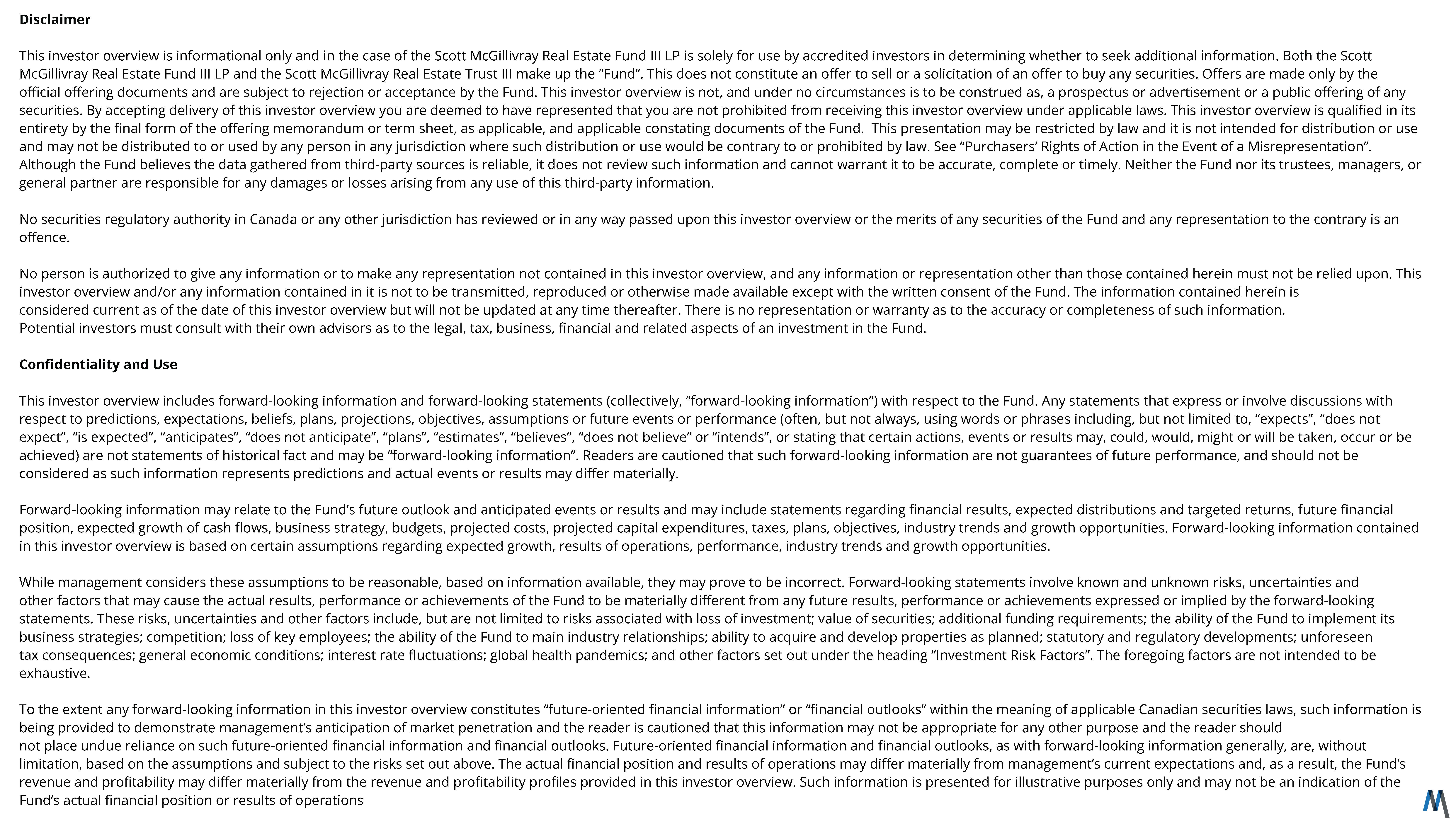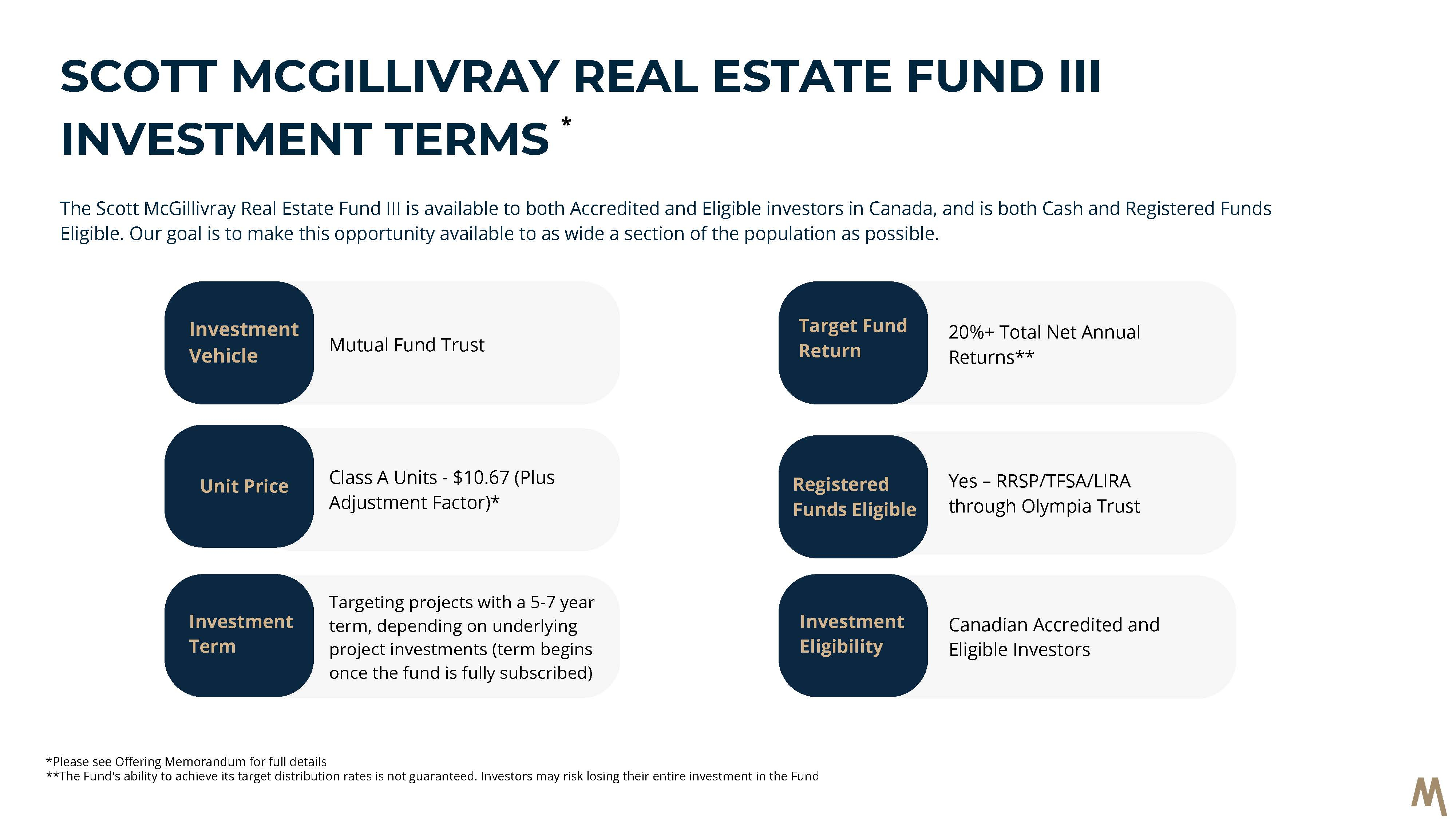 The Trust plans to invest its funds into Scott McGillivray Real Estate Fund III LP. The Trustees of the Trust are Andrew and Scott McGillivray.