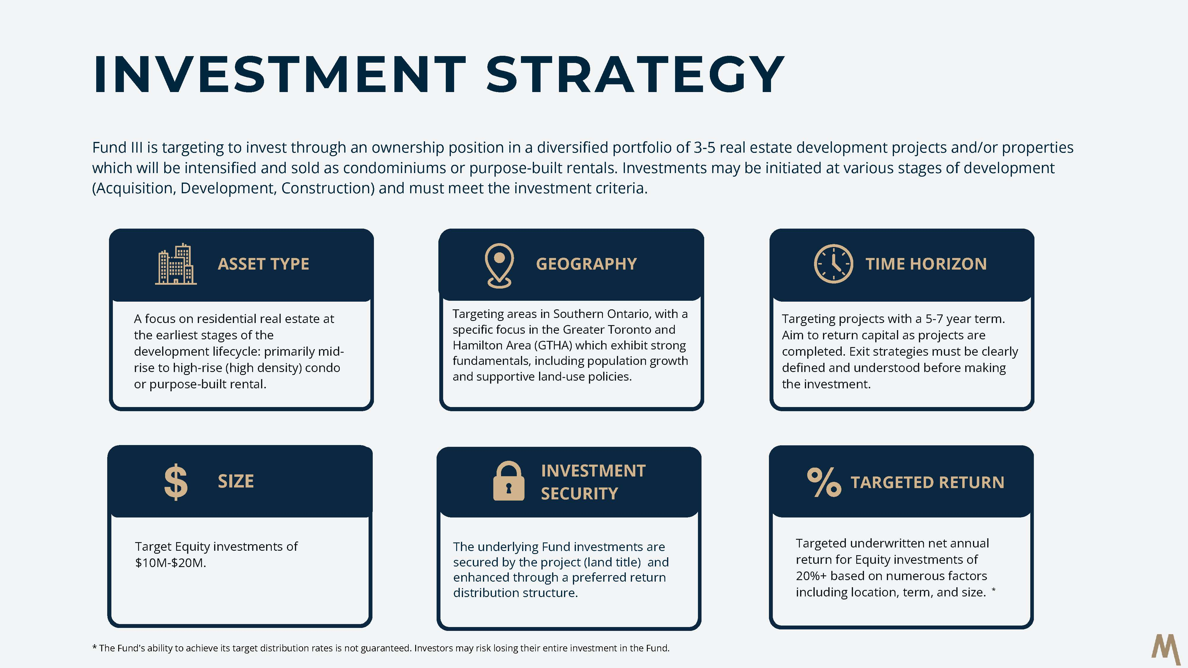 Please note these outlined returns and distributions are targets only, and the General Partner makes no assurances that the partnership will meet these targets.