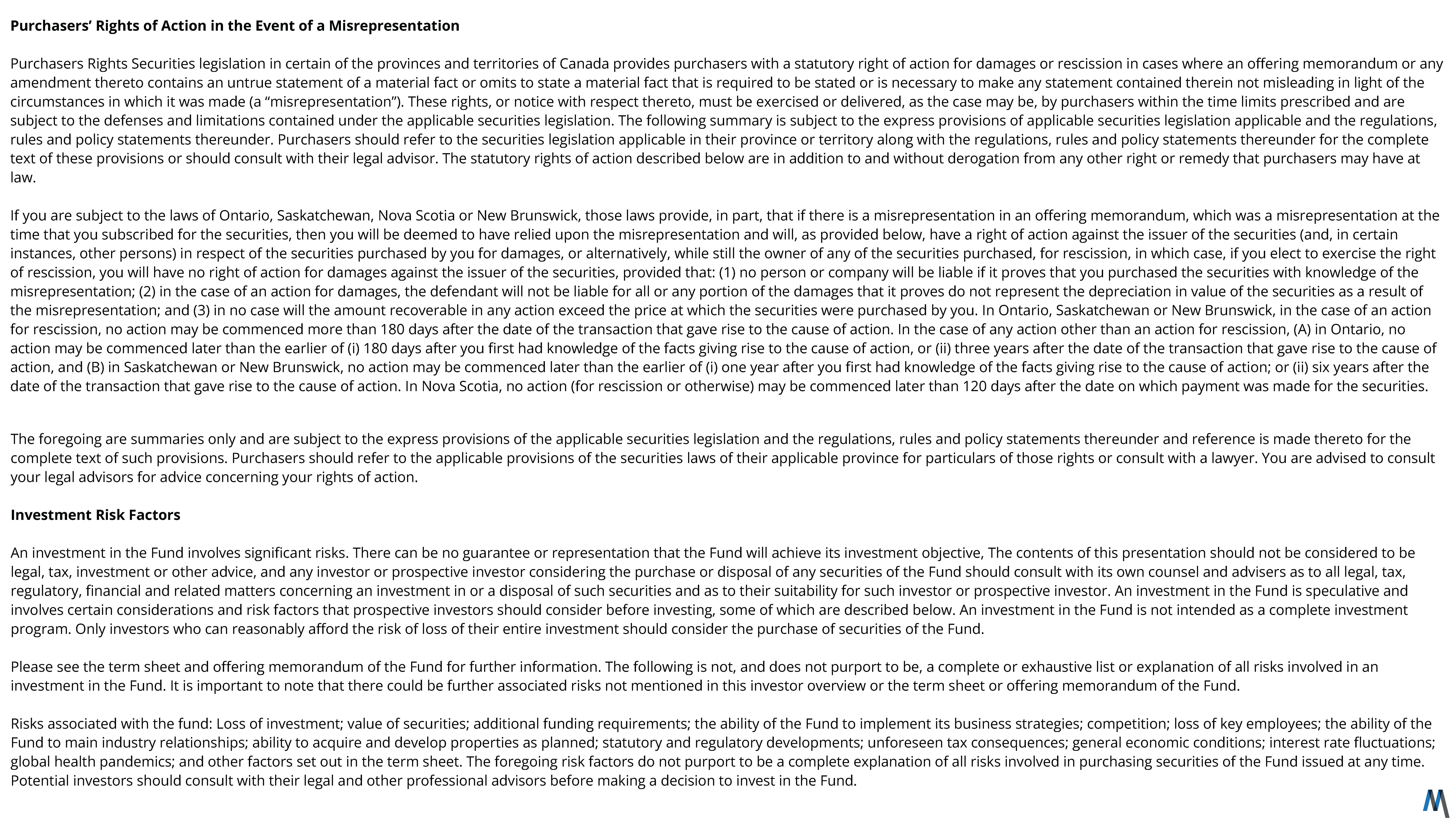 Target Fund Size: CAD $80,000,000